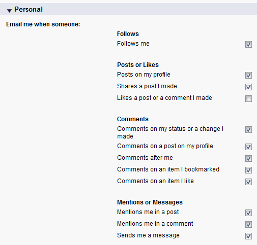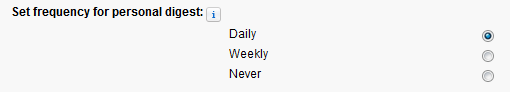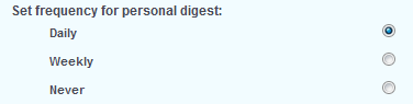 - "Set frequency for personal digest": here you can decide to receive a daily or weekly digest of the emails, or never receive any emails base on the actions above.