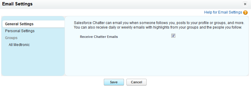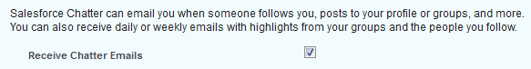 By default, you will receive “Chatter Digests” via email on a daily basis. You will also receive emails when someone ‘follows’ you, performs some activities on your posts, comments on your posts etc. After you have joined some groups, all changes to these groups will be emailed to you as well.