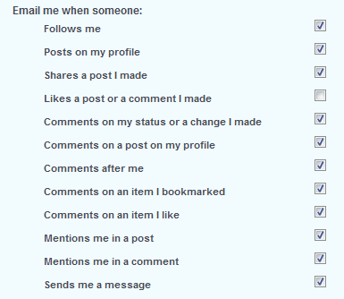 - "Email me when someone": here you can decide what kind of action would trigger an email immediately sent to you.