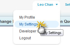 - To enter the My Settings page, click on your name → "My Settings"